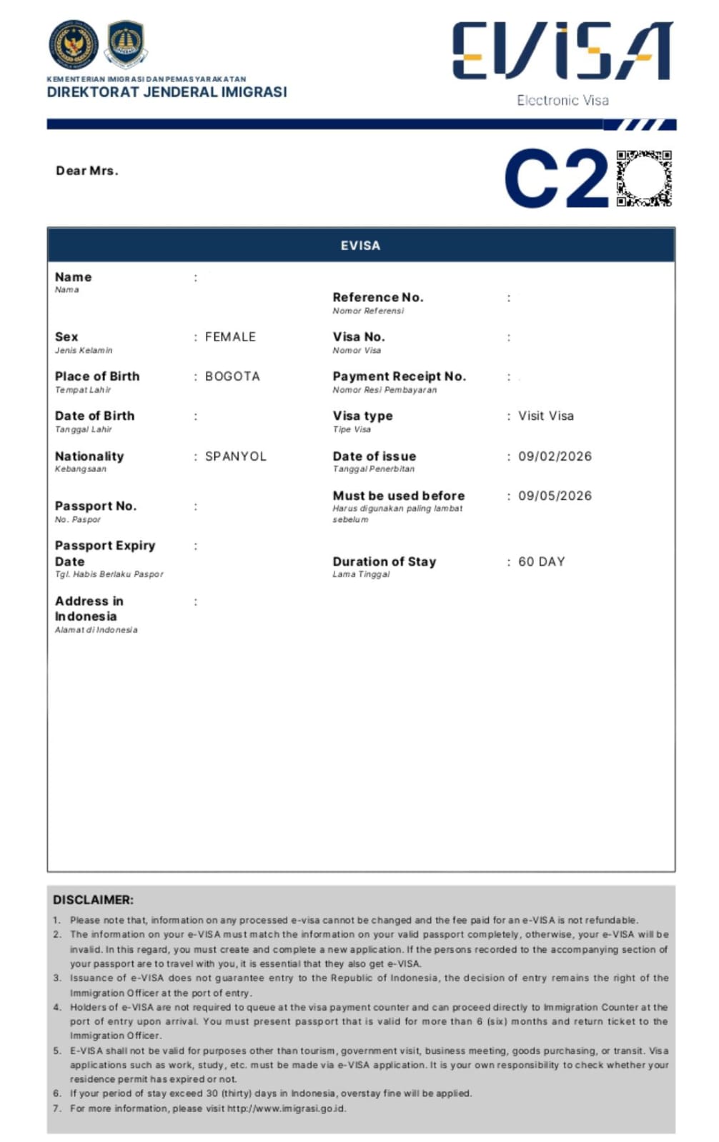 - Staying in Indonesia over the period of your stay permit
